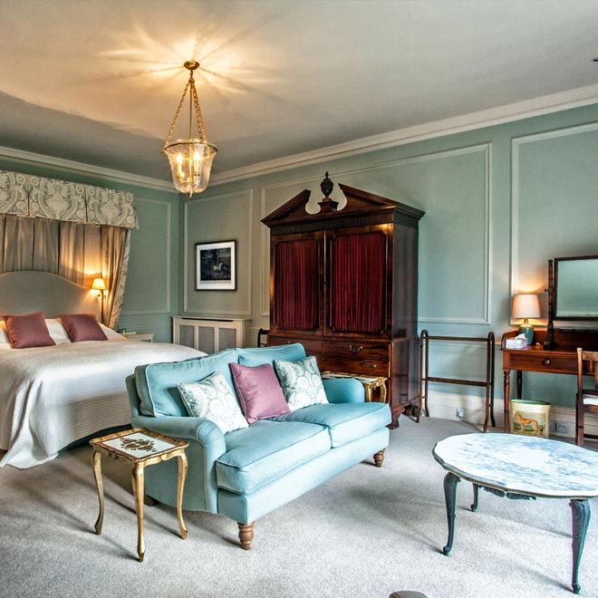 Our rooms were renovated to a high-standard in 2017 and have featured in national press including The Sunday Times. Our Bridal Suite boasts incredible views, a separate dressing room and an en-suite with walk-in shower and separate double bath. For many people, this show-stopping bedroom seals the deal when they visit!