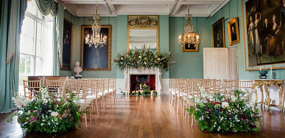 However, if that’s not right for you, choose from our ballroom, oval room (a state room next to our ballroom) or our dining room. While you need a roof to legally marry here in the UK – we can provide two options which meet the legal requirements but still give the feel of an outdoor wedding: The Temple which overlooks our lake and the Front Porch with our Twelfth century Monastery Ruins beside it.